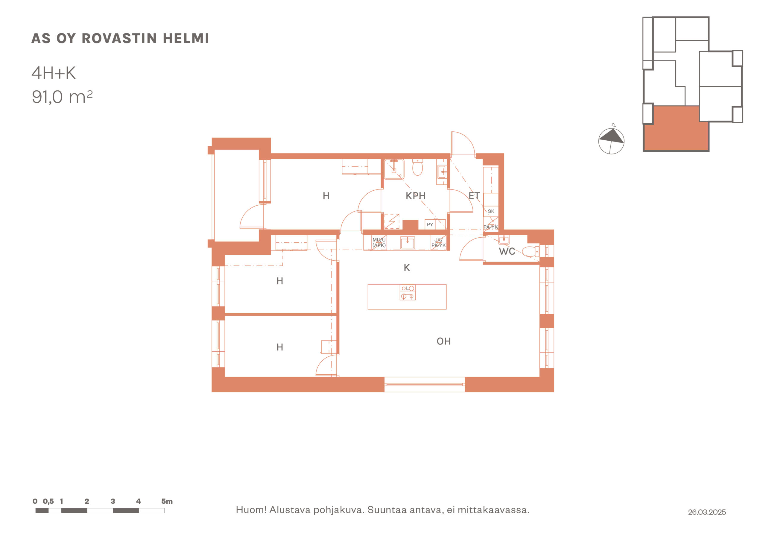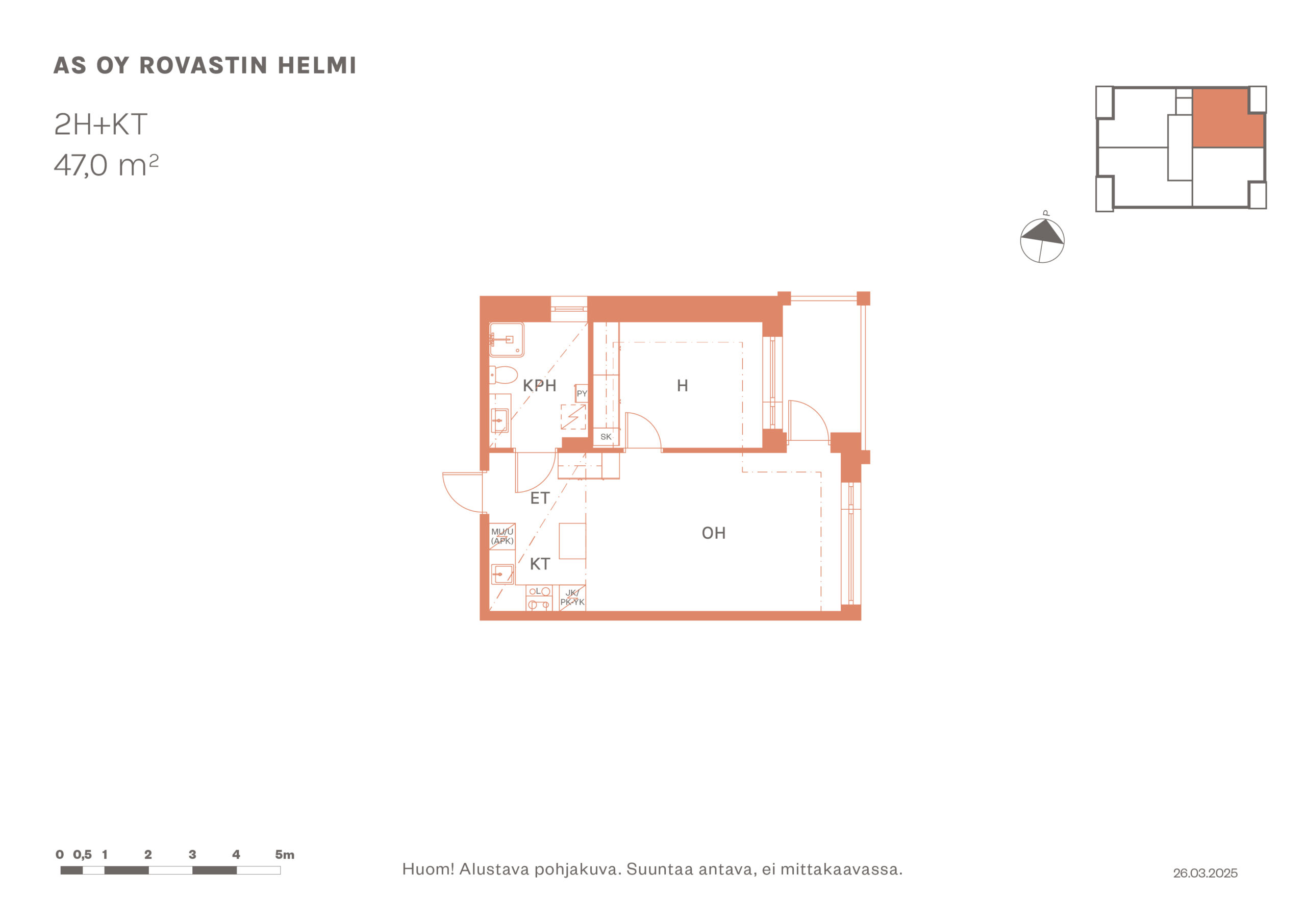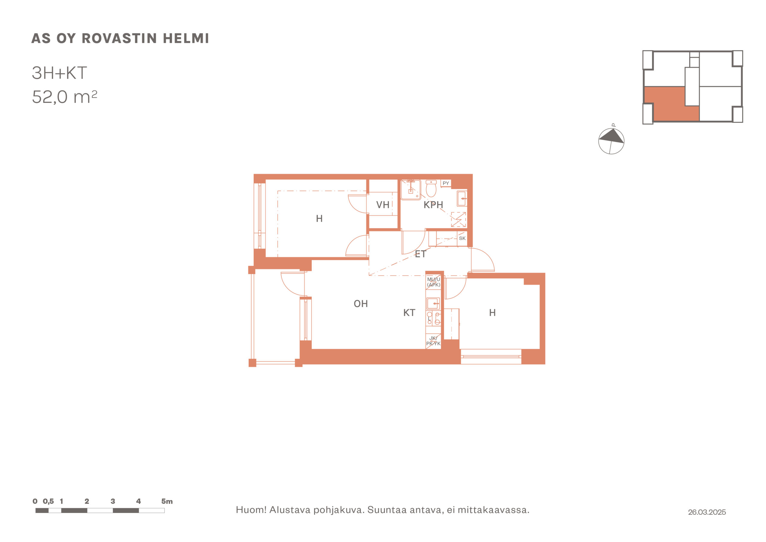 | Vuokrattu ja ostettavissa | 5 | 2h + kt | 47 | 2/4 | 317 900 € | 163 721 € | 154 179 € | 479-572 | 94 | Asunto 5 |