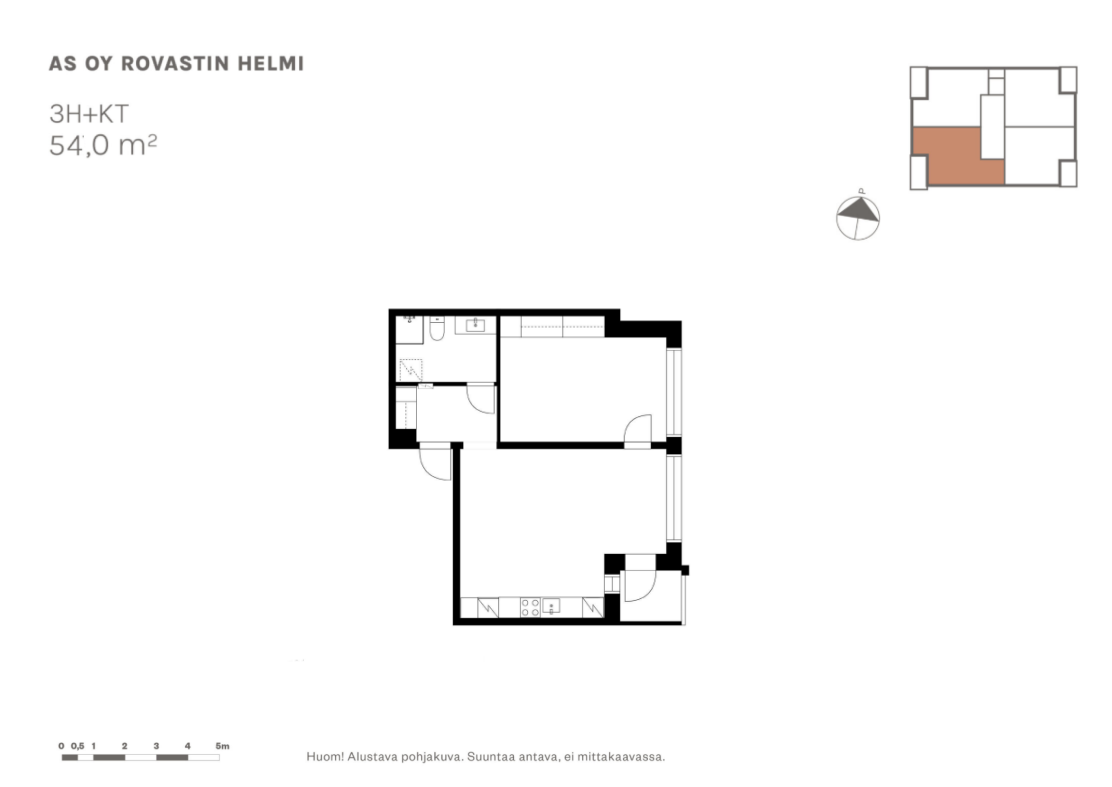 | Vuokrattu ja ostettavissa | 3 | 2h + kt | 54 | 1/4 | 352 900 € | 188 105 € | 164 795 € | 277-384 | 108 | Asunto 3 |